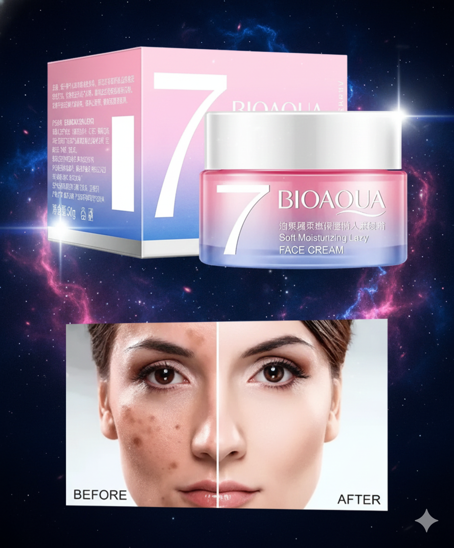 Nuestra crema BioAqua V7 proporciona hidratación intensa y aclara tu piel al mismo tiempo.